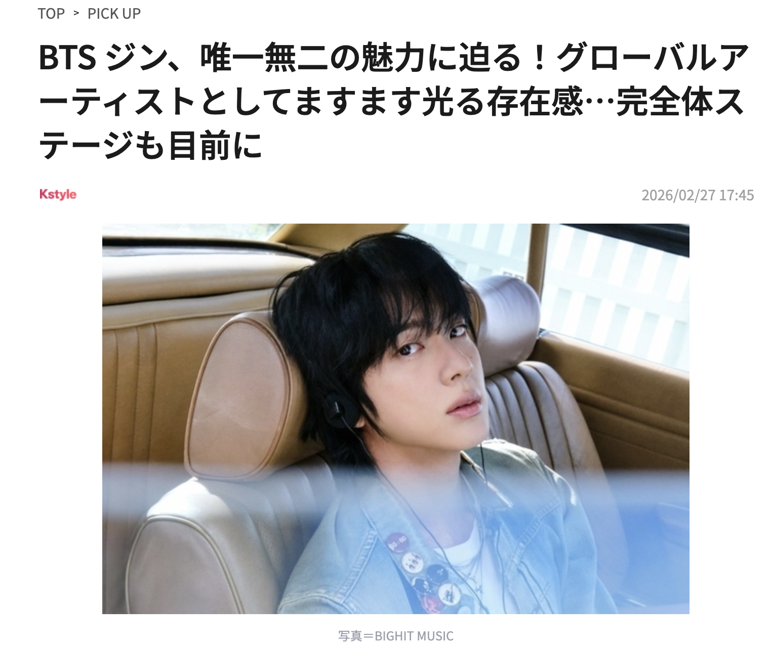 コラムタイトル:BTS ジン、唯一無二の魅力に迫る!グローバルアーティストとしてますます光る存在感…完全体ステージも目前に